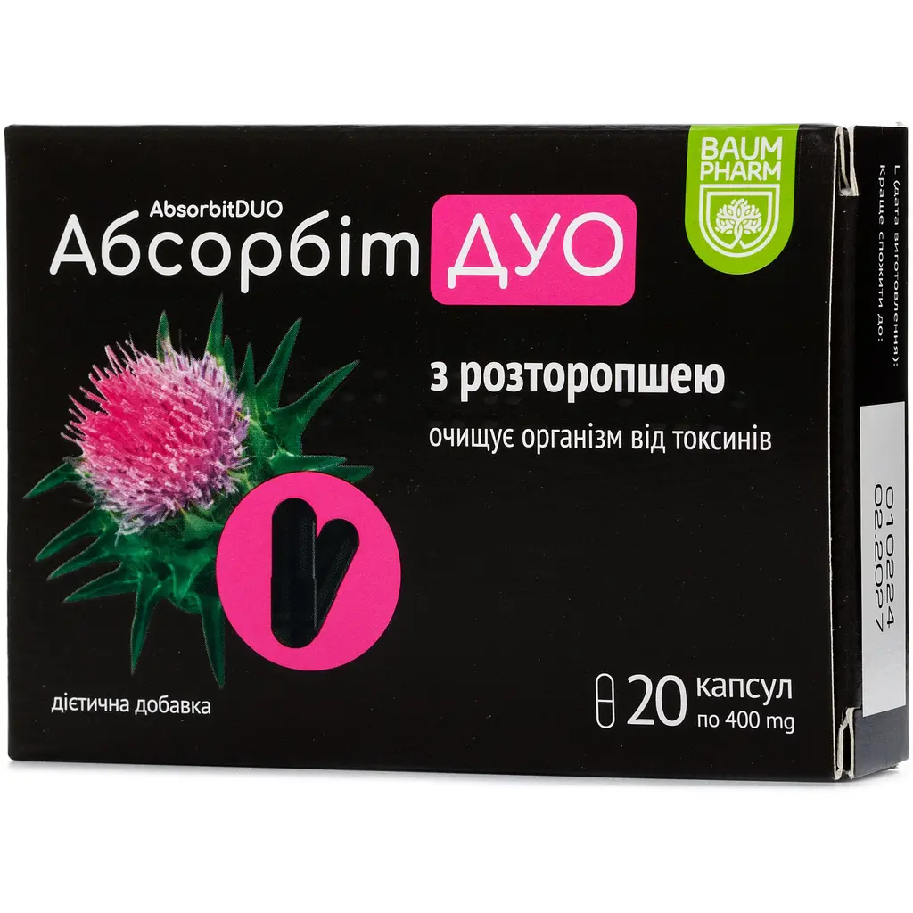 Вугілля активоване – 56,7 % (226,8 мг), крохмаль картопляний – 23,3 %, екстракт розторопші плямистої (Silybum marianum) (Китай) – 10,0 % (40,0 мг) (в перерахунку на силімарин 32 мг), наповнювач кальцію стеарат (Е470) – 10,0 %.