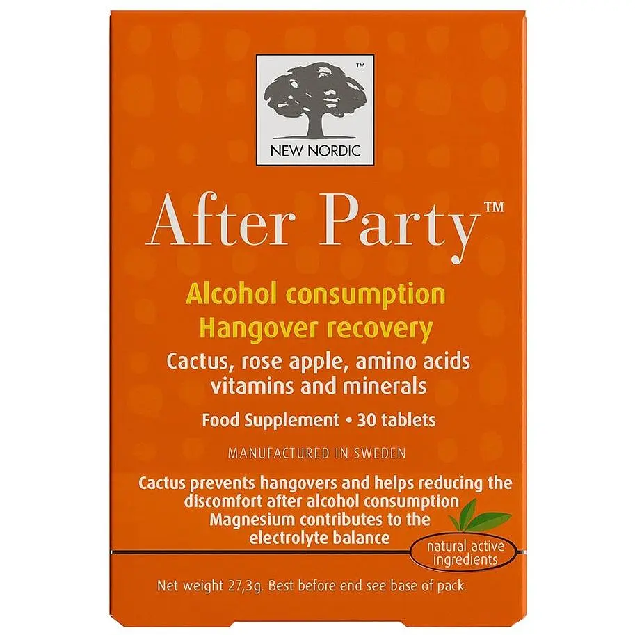 After party – це таблетка на основі натурального екстракту кактуса та екстракту джамбози, а також необхідних поживних речовин, які сприяють детоксикації організму, відновленню електролітного балансу та поліпшенню загального самопочуття після вживання алкоголю.