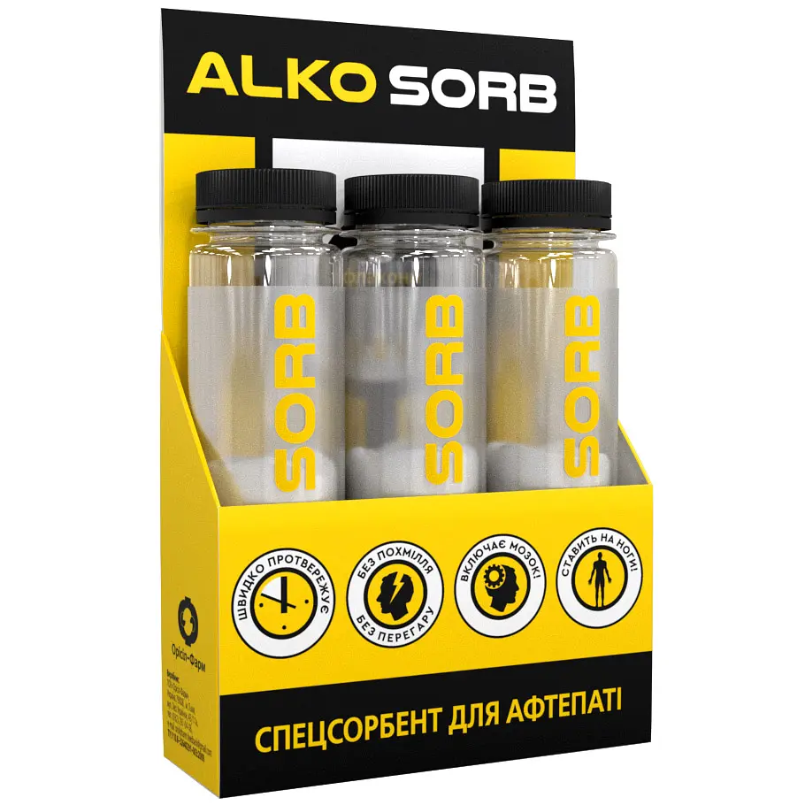 Порошок для оральної суспензії Алко-Сорб - новий комплексний препарат, дія якого спрямована на усунення симптомів алкогольної інтоксикації та похмілля. Завдяки унікальному потрійному складу Алко-Сорб діє на всіх етапах метаболізму алкоголю в організмі.