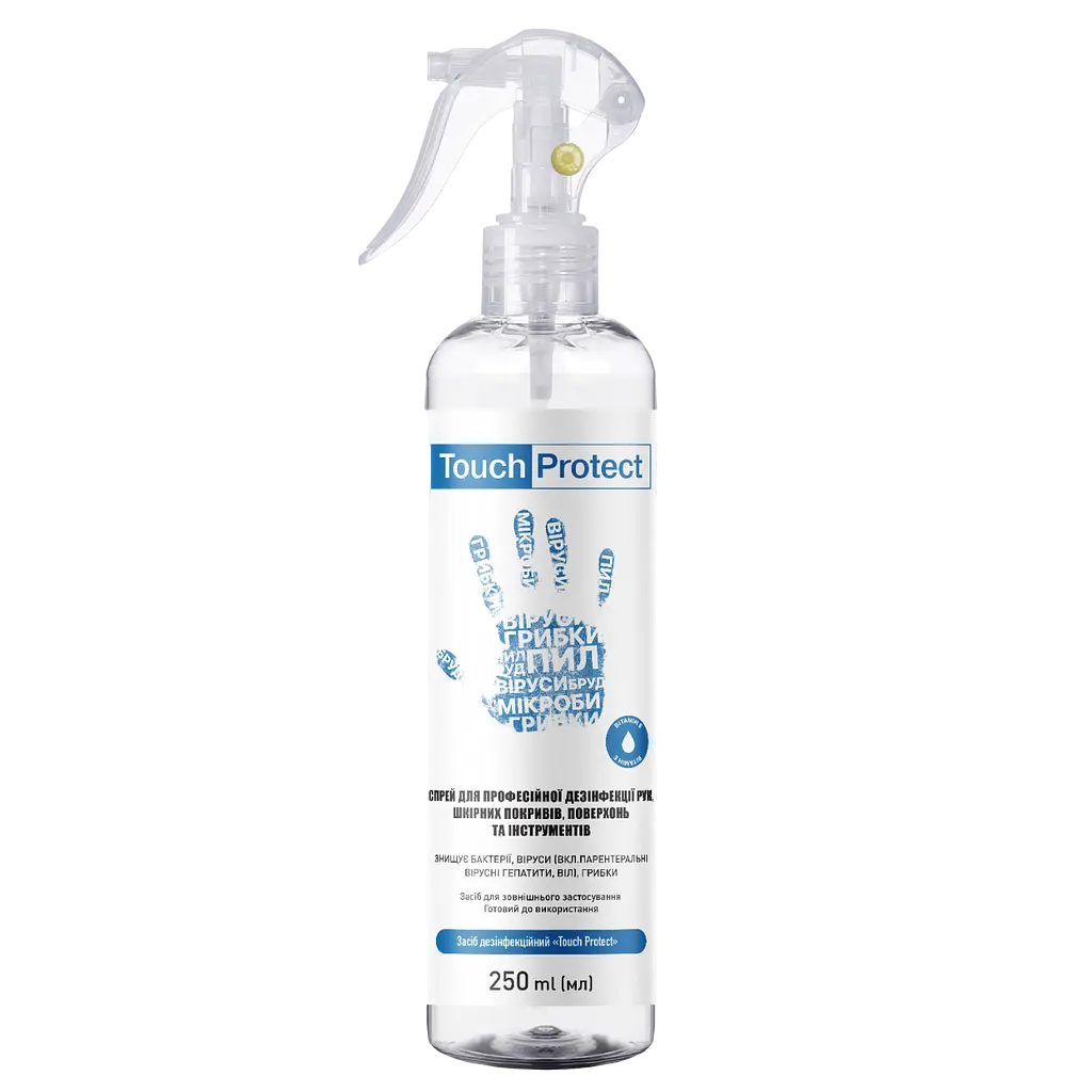 Антисептик спрей для дезінфекції рук, тіла, поверхонь та інструментів Touch Protect - готовий розчин для зовнішнього застосування