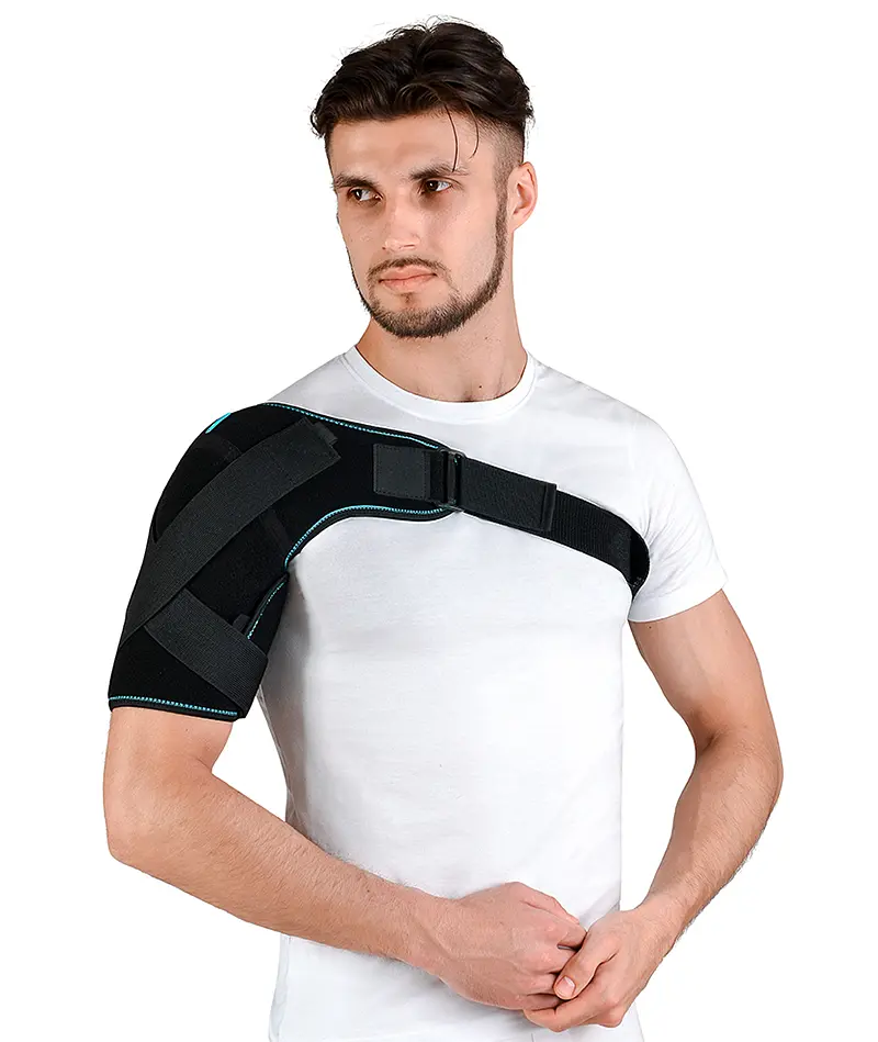 Проста і зрозуміла конструкція бандажа складається з наплічного елемента й фіксувального ременя. Наплічник із неопрена відмінно зберігає тепло тіла. Трикотажна обробка країв робить виріб комфортнішим. Фіксувальний ремінь обладнано пом’якшувальною накладкою, щоб він не врізався у шкіру. Є додатковий ремінь, що обмежує відведення кінцівки.