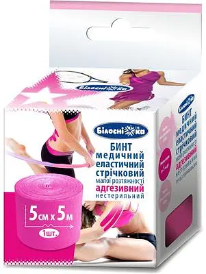 Бинт адгезивний еластичний Білосніжка - це еластична клейка стрічка, є ефективним засобом у запобіганні та лікуванні травм м'язів і зв'язок. Бинт розроблений з метою профілактики та природного прискорення процесу відновлення і реабілітації. Іноді даний бинт називають "спортивний тейп", sport tape, kinetic tape або "еластичний пластир".