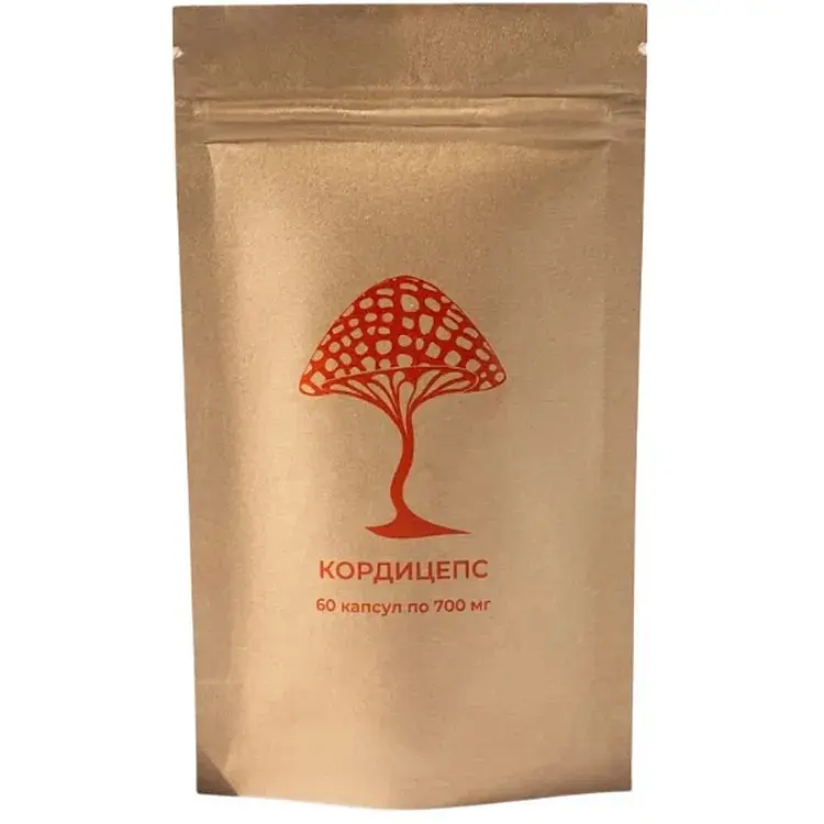 Сушений кордицепс (40% плодове тіло і 60% ферментованого міцелія) в капсулі із целюлоли.
