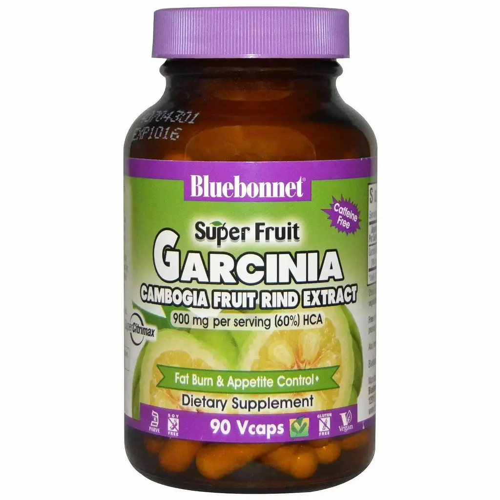 Bluebonnet Garcinia Cambogia Fruit Rind Extract – дієтична добавка, що містить 1500 мг на порцію запатентованого екстракту південноазіатської гарцинії камбоджійської (Super CitriMax). Без кофеїну, вона підтримує контроль ваги при правильному харчуванні та фізичних навантаженнях.