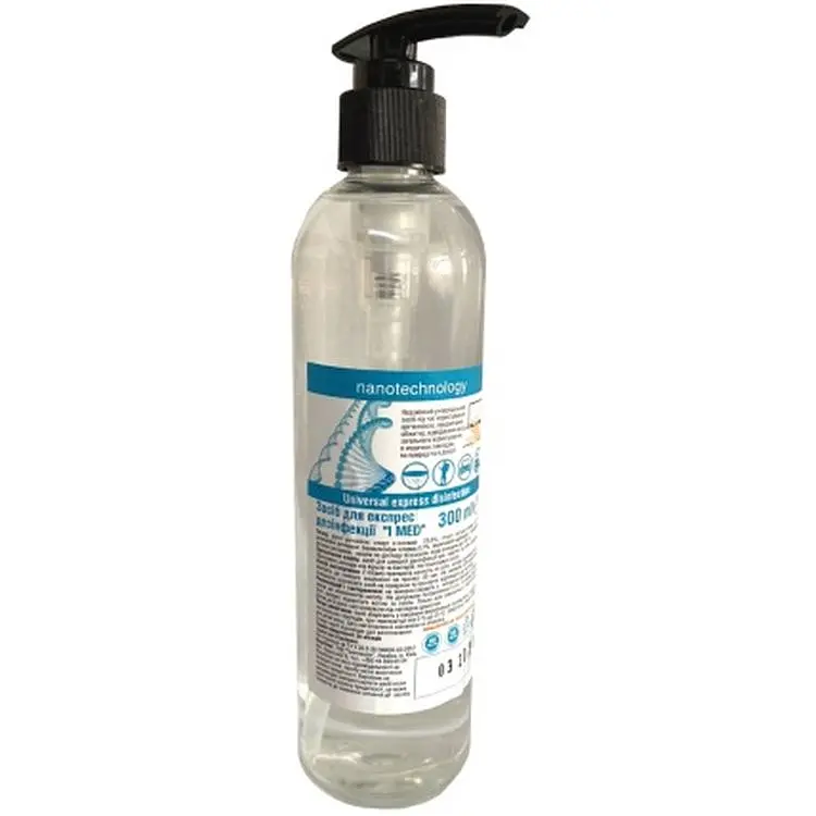 Засіб IMED на основі спирту для швидкої дезінфекції рук, промислового обладнання, всіх типів поверхонь згідно санітарних правил та виробничих інструкцій. Вміст спирту не менше 70%.