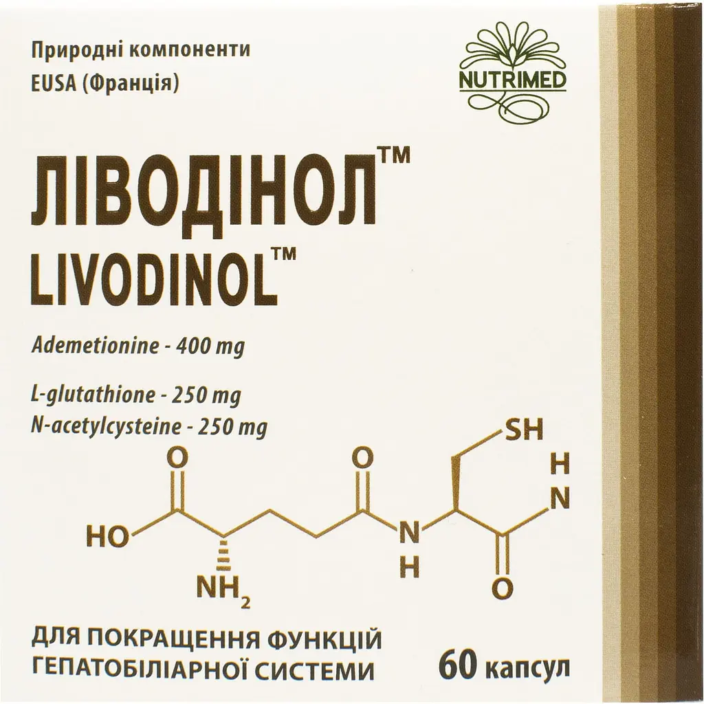 Переваги: Ліводінол містить збалансовану комбінацію похідних амінокислот для покращення роботи гепатобіліарної системи та детоксикації при: