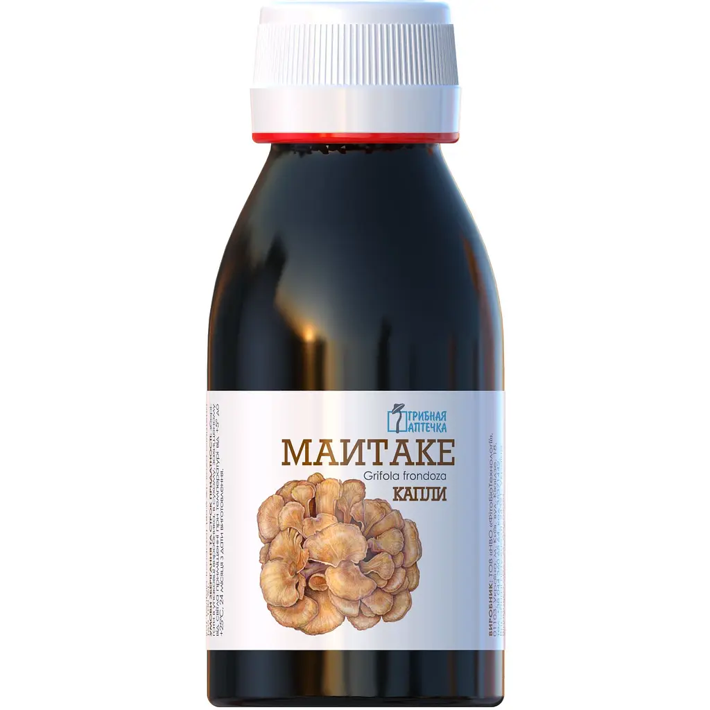 Екстракт водно-спиртовий плодового тіла грибів майтаке (грифола листянолисова) (Grifola frondoza) - 80%, бензоат натрію - 0,015%, вода очищена до 100%.