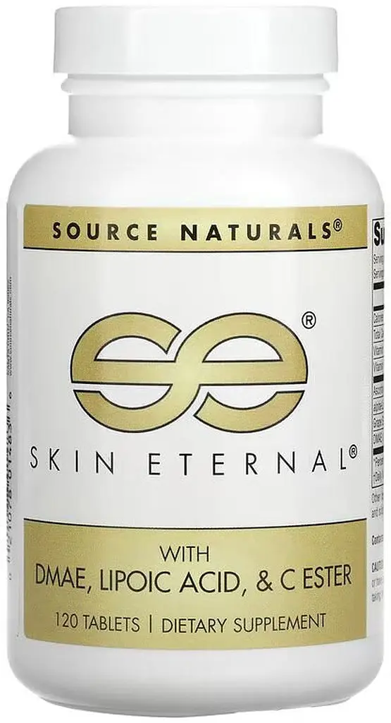 Source Naturals Skin Eternal with DMAE Lipoic Acid and C Ester - харчова добавка, що містить п'ять ключових інгредієнтів, які разом живлять шкіру та підтримують здоров'я шкірних тканин.