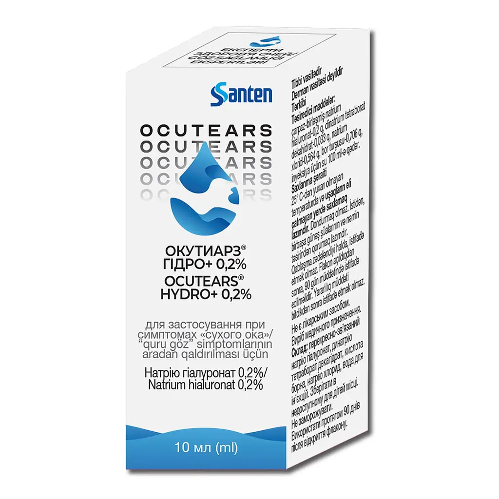 Окутиарз Гідро+ 0.2% призначений для полегшення симптомів «сухого ока», дискомфорту очей, а також для захисту рогівки як замінник сліз, забезпечуючи тривале зволоження.