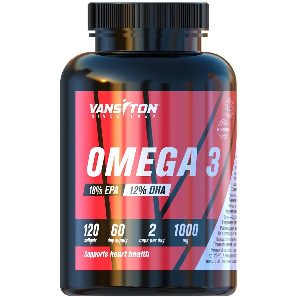 Омега-3 Vansiton допомагає нашому тілу підтримувати оптимальний рівень витривалості, внаслідок вироблення додаткового тестостерону. Даний гормон як в чоловічому, так і в жіночому організмі відповідає за біосинтез протеїну і зростання м'язової маси. Він покращує стан нашої нервової системи в стресових ситуаціях, при інтенсивних фізичних навантаженнях, а також підвищує розумову активність і швидкість реакції.