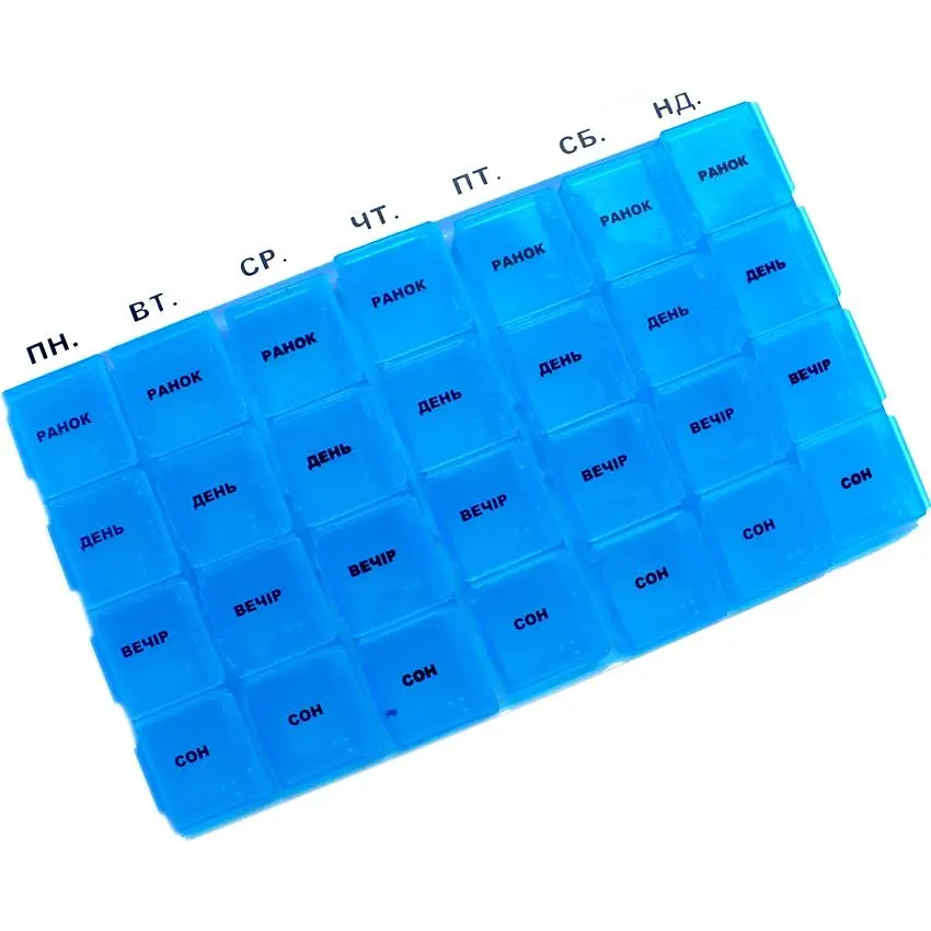 Органайзер для пігулок Красота та Здоров'я тиждень призначений для компактного та впорядкованого зберігання ліків чи вітамінів.