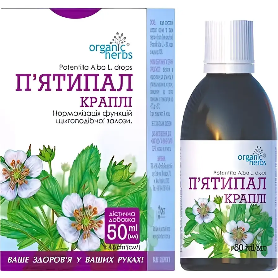 Унікальна цінність п'ятипалу (в народі: Перстач білий, Межиперщина, П'ятилисник, Перстач білий) полягає в тому, що попри свою тендітність, він містить у собі майже всю таблицю Менделєєва за мікро- та макроелементами. Особливого значення набуває використання кореня п'ятипала у зонах із високим показником чисельності захворювань щитоподібної залози серед населення, а також у регіонах із дефіцитом йоду в природі. Актуальність використання п'ятипала у профілактиці захворювань щитоподібної залози для мешканців України безперечна - після аварії на ЧАЕС фактично кожна людина, що проживає на території України, тією чи іншою мірою, схильна до несприятливого впливу радіації, а отже, і порушень функції ендокринної системи.