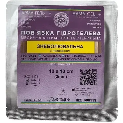 Гідрогелева пов’язка АРМА-ГЕЛЬ+ - інноваційне рішення для догляду за ранами зі знеболювальним ефектом.
