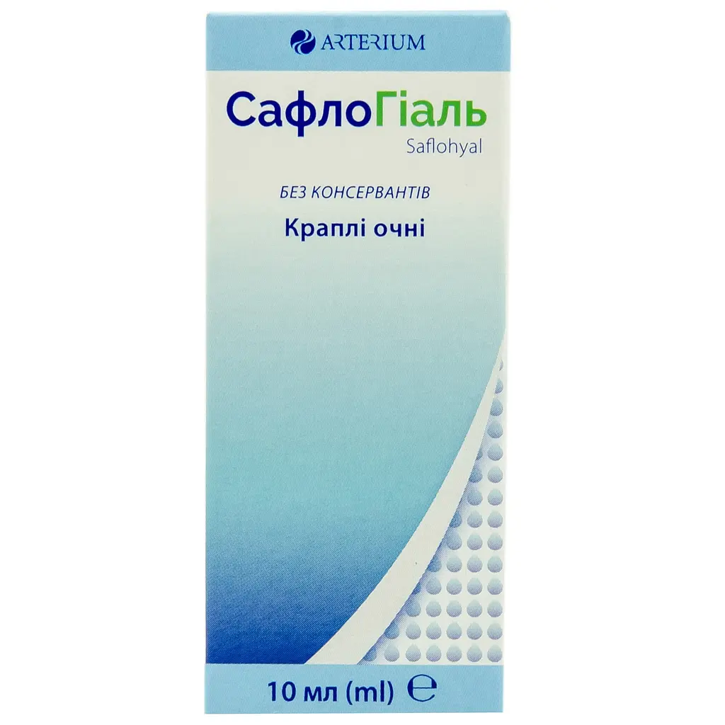 СафлоГіаль – це медичний виріб із протизапальними властивостями, який інгібує еволюційний процес флоголізу. Застосовується для зняття симптомів (зуд, відчуття стороннього тіла, почервоніння тощо) при запальних процесах на поверхні ока, що супроводжуються дискомфортом, блефаритами та кон’юнктивітами у дітей і дорослих. Завдяки термостійкому полімеру, що формує гель при контакті з оком, забезпечує тривале зволоження та змащування поверхні ока. Технологія OSD (офтальмологічний дозатор натискного типу) гарантує стерильну доставку крапель без консервантів.