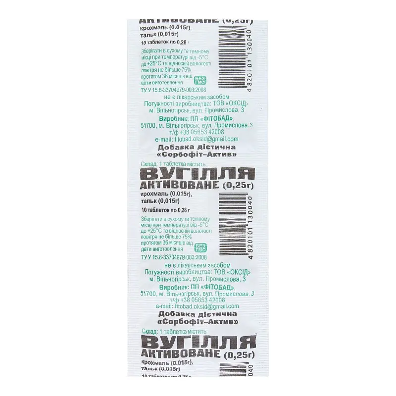 Продукт містить активоване вугілля, отримане з природної сировини, яке завдяки високій сорбційній здатності зв’язує токсини, гази та шкідливі речовини, сприяючи їх виведенню. Формула з 10 таблеток у блістері розрахована на короткий курс прийому, забезпечуючи зручність використання.