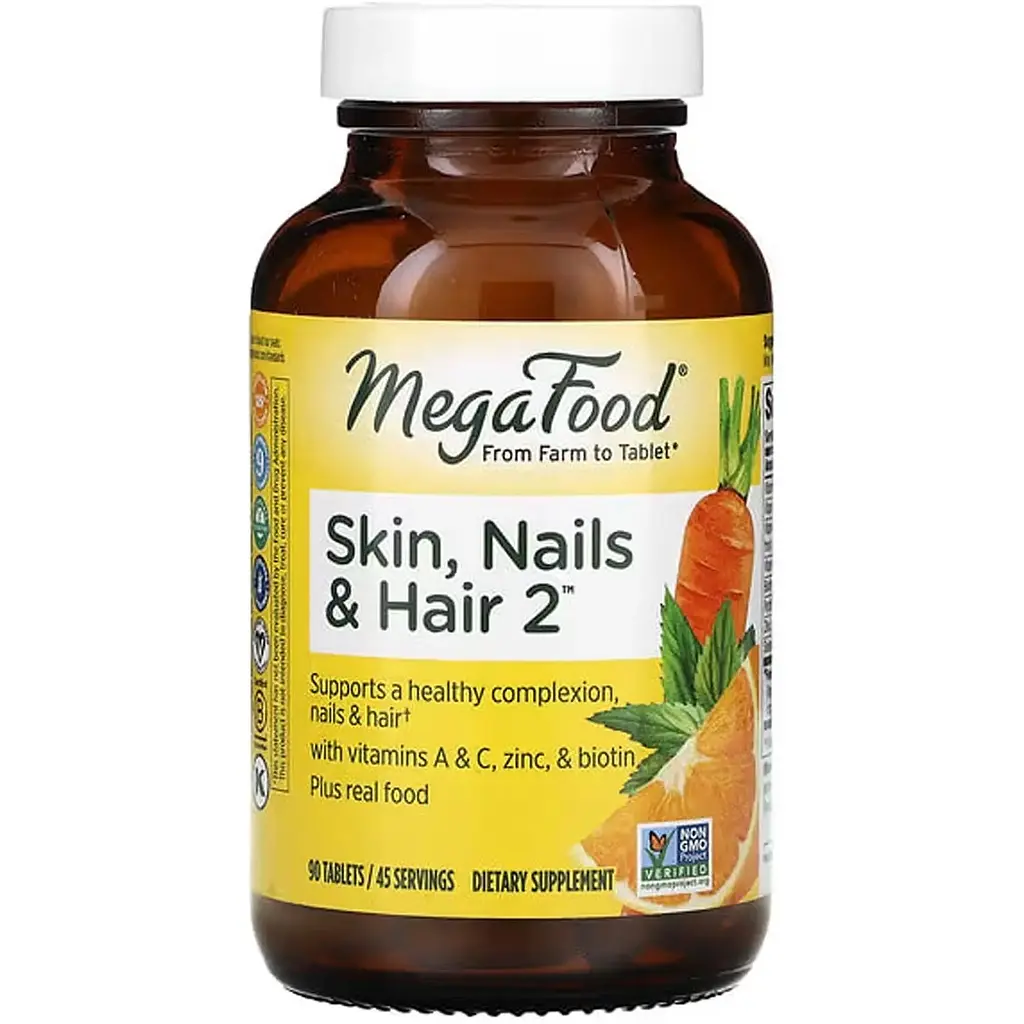 Вітаміни Skin, Nails & Hair 2 відіграють важливу роль у зміцненні волосся і нігтів. Вони безумовно ефективні не тільки при випаданні і виснаженні волосся, але і корисні для всього організму в цілому. Для того, щоб волоссю вистачало всіх життєво необхідних речовин для нормальної життєдіяльності необхідно, щоб надходила достатня кількість поживних речовин від коренів до їх кінчиків (жири, вуглеводи, білки, кисень і ін.).