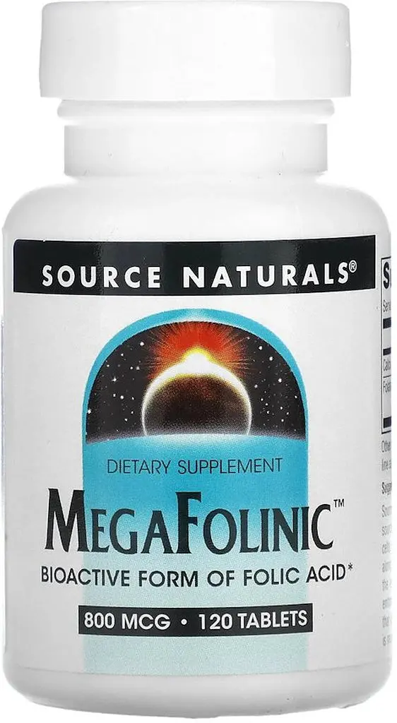 Source Naturals MegaFolinic - це джерело фолієвої кислоти з високою біодоступністю, яке допомагає організму виробляти здорові еритроцити. Він підтримує здоровий мозковий і неврологічне розвиток, а також здоровий поділ клітин.