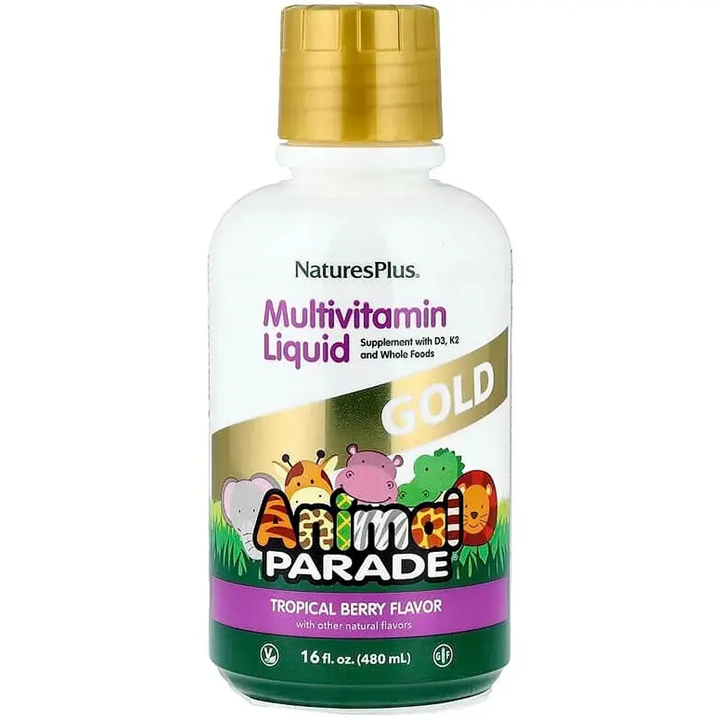NaturesPlus Animal Parade Gold - це збалансована багатокомпонентна добавка в рідкій формі, створена для комплексної підтримки дитячого організму. Продукт має приємний смак тропічних ягід і містить широкий спектр нутрієнтів, необхідних для активного росту та гармонійного розвитку дитини.