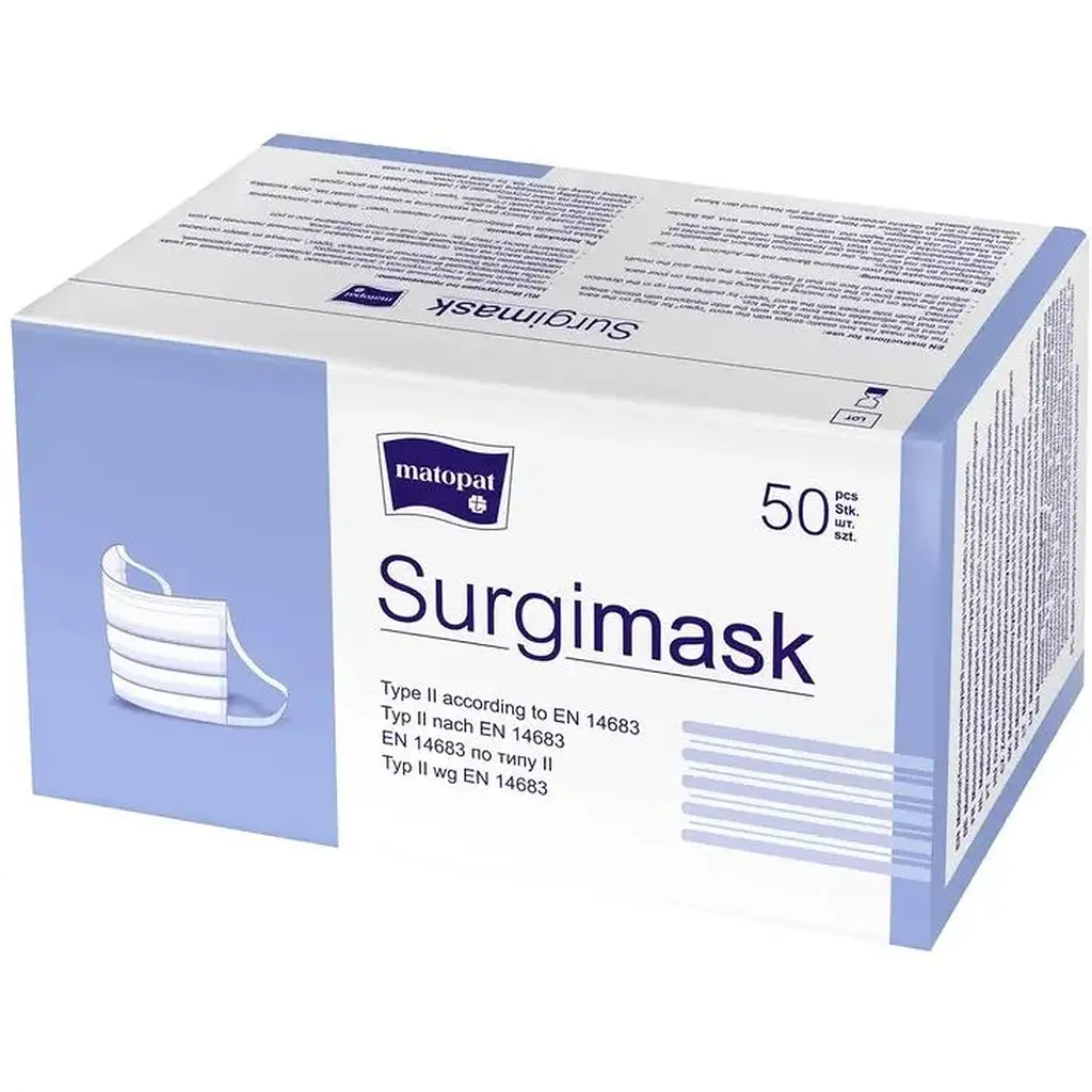 Маска медицинская нестерильная Matopat Surgimask тип II - это защитные маски изготовленные из 3-слойного нетканого материала, обладающего фильтрационными свойствами, и нетканых материалов с защитными функциями.