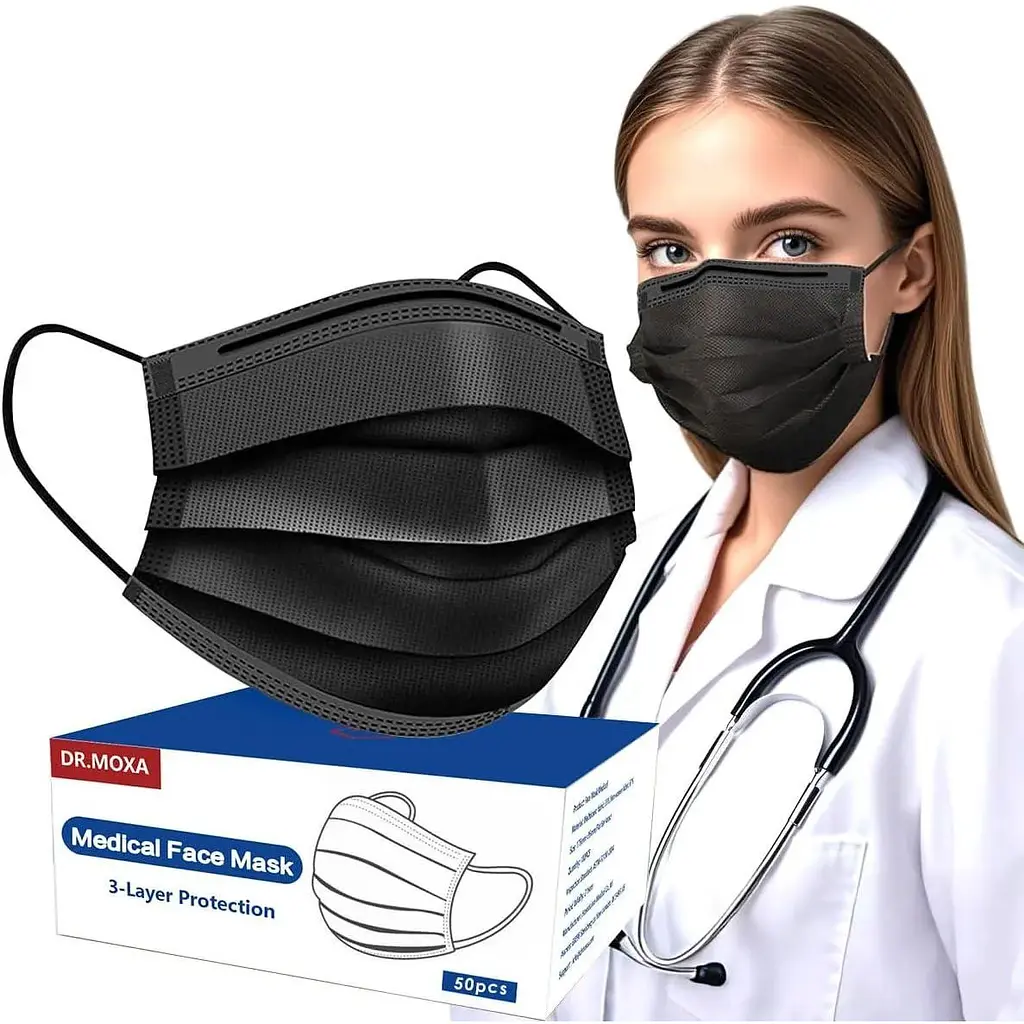 50 шт. черных одноразовых медицинских масок для лица, трехслойные защитные маски для взрослых и подростков