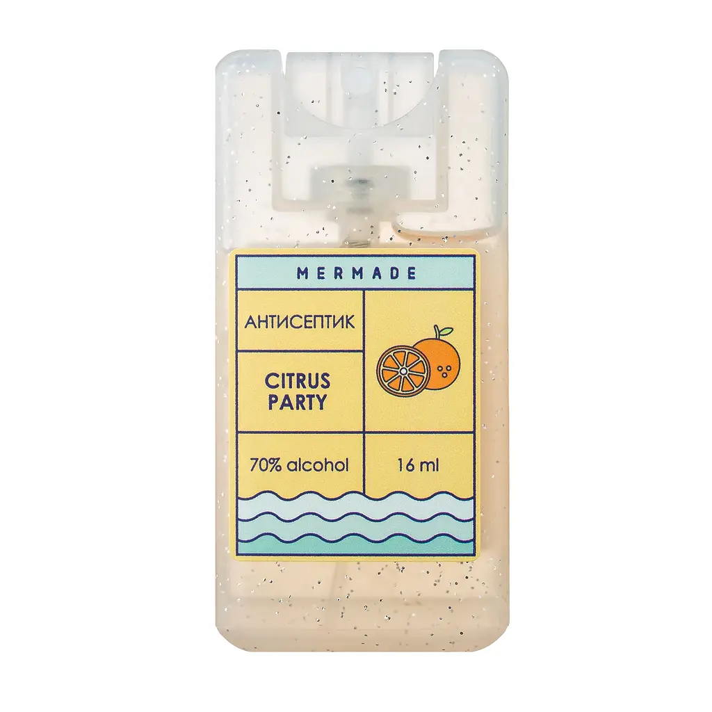 Антисептик-спрей для рук Mermade Citrus Party подходит для быстрой и эффективной дезинфекции рук.