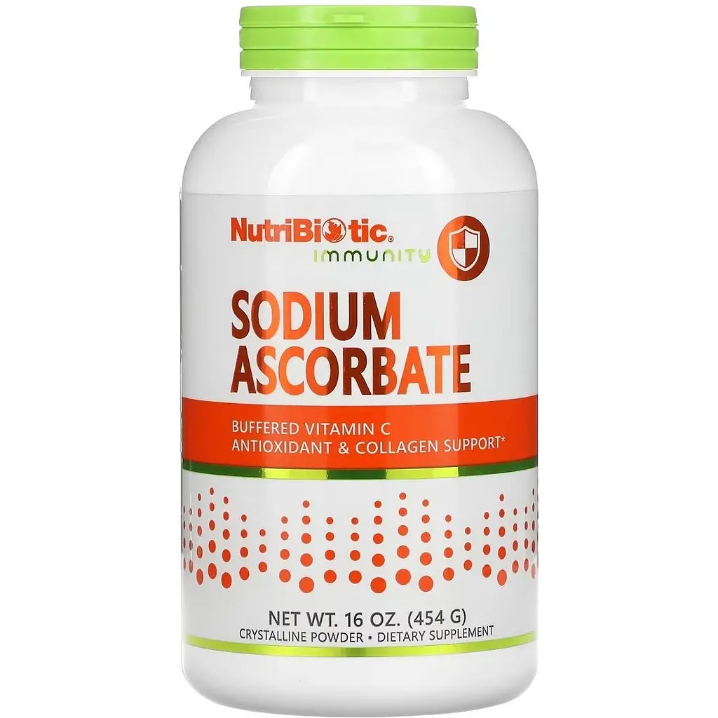 Аскорбат натрия NutriBiotic не имеет горького привкуса, некислый буферизованный кристаллический порошок, содержащий 100% витамин C (L-аскорбиновую кислоту) фармацевтической степени чистоты и натрий в хорошо растворимой форме.