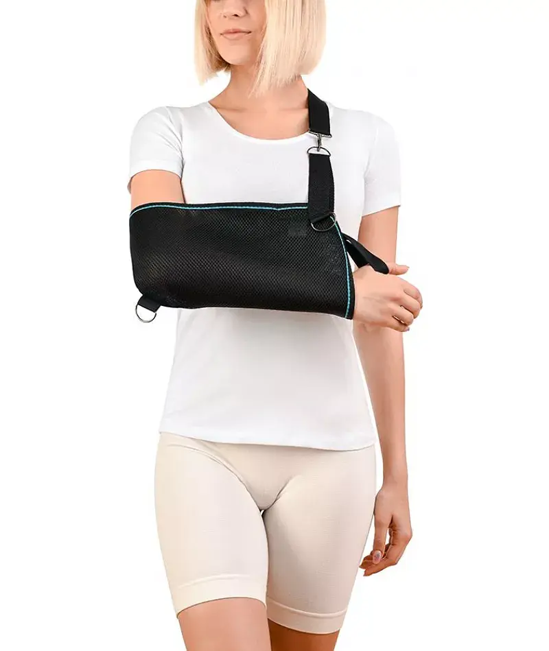 Поддерживает плечо и руку, широко используется как самостоятельное средство иммобилизации или в сочетании с другими бандажами или ортезами на суставы верхних конечностей, а также с традиционными гипсовыми повязками. Простая и эффективная конструкция бандажа обеспечивает качественную разгрузку и фиксацию суставов в опорной муфте, что поддерживает руку и оптимизирует ее положение. Опорная муфта изготовлена из воздухо- и влагопроницаемой ткани, поэтому концовка в ней не перегревается и не потеет.