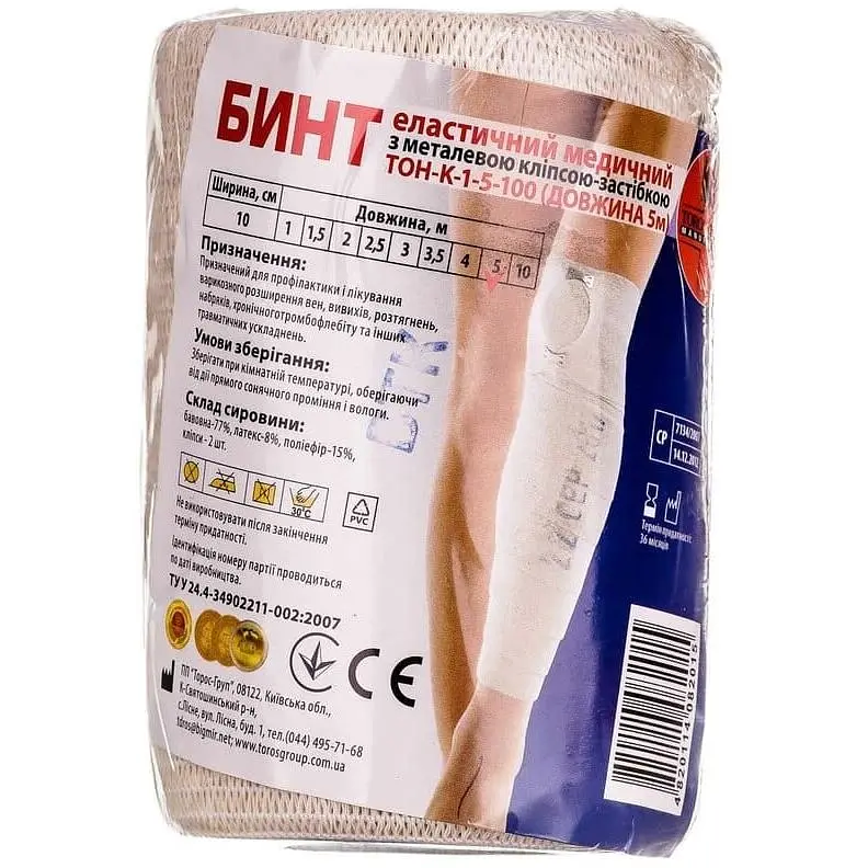 Ширина и длина дает возможность максимально покрыть травматическую зону одним бинтом. При производстве бинта используется закрученная (закрытая) латексная нить, которая предотвращает аллергическую реакцию кожи.