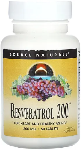 Source Naturals Resveratrol 200 mg содержит 200 мг чистого ресвератрола, соединения, вырабатываемого виноградом и другими растениями для защиты от стрессов окружающей среды.