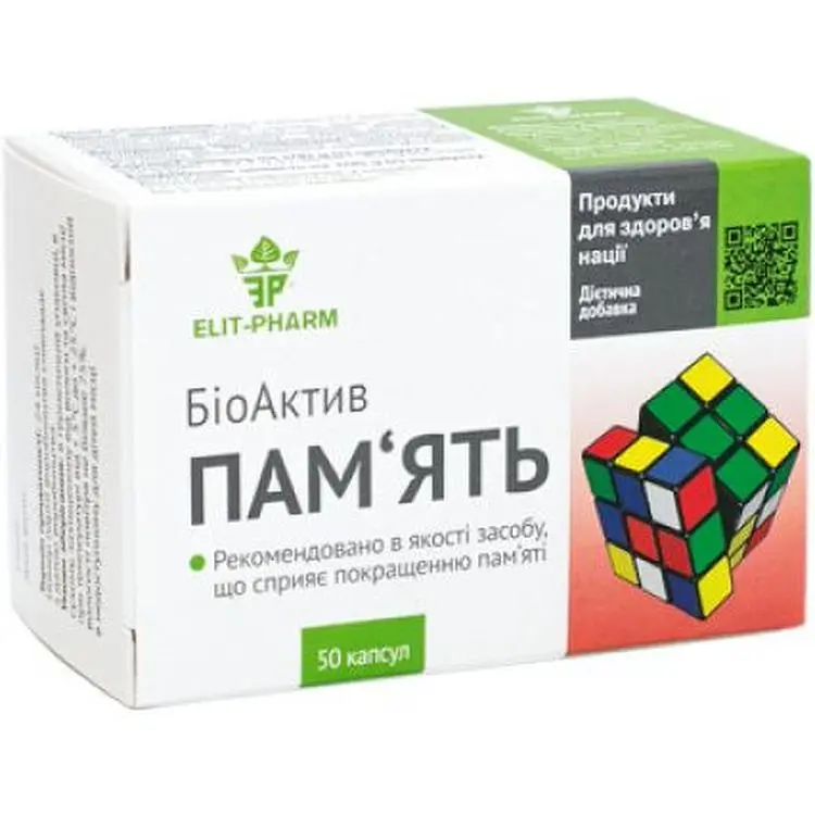 Диетическая добавка Память БиоАктив благотворно влияет на работу головного мозга, способствует улучшению памяти, активирует нервную систему в целом, повышает умственную и физическую работоспособность организма, способствует снятию усталости. Препарат увеличивает сопротивляемость организма к инфекциям, повышает жизненный тонус, улучшает самочувствие.