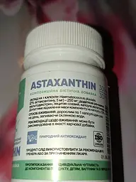 Астаксантин — це потужний природний антиоксидант, який корисний при запаленнях, для шкіри та очей. Купила вже другу баночку на сайті, оскільки вона мені допомагає при моїх проблемах з очима та шкірою. Очі стали менше втомлюватися, немає такого подразнення при яскравому світлі, шкіра менше сохне, результат на обличчя».