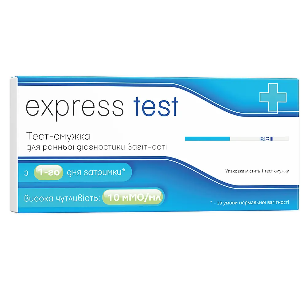 Тест-полоска Express Test - быстрые диагностические тесты для определения беременности. Высокая чувствительность Express Test №1 позволяет диагностировать беременность с 1-го дня задержки.