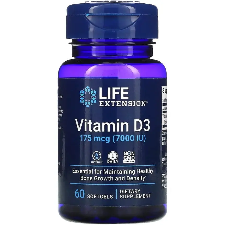 Life Extension Vitamin D3 - поддержание здорового уровня витамина D помогает сохранить юношеские когнитивные функции и предлагает широкий спектр преимуществ для здоровья костей, иммунной системы и многого другого.